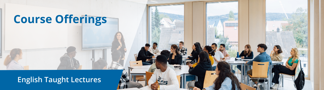 As an exchange student, you can freely select courses from all our study programs. Study with our German and international students in the courses of your choice. You are welcome to browse through our catalogue below to check out available courses offered in English that fit your major. Our English-taught lectures are thematically structured for exchange students. The lectures are clustered under the following subjects (on the left).