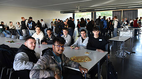 Nach der Stärkung durch Flammkuchen, die von der Fachschaft der Fakultät gesponsert wurden, gab es ein abwechslungsreiches Programm, das für beste Unterhaltung und gute Stimmung bei allen Teilnehmenden sorgte. Für humorvolle Unterhaltung sorgte Prof. Dr. Joachim Albrechts kreative PowerPoint-Präsentation über physikalische Phänomene. Das von Prof. Dr. Rainer Eber moderierte Kahoot-Quiz bot knifflige Fragen rund um die Hochschule und das studentische E-Motion-Rennteam begeisterte mit einem Pubquiz. Auch der 20-jährige Silver Surow aus Estland, ebenfalls Erstsemester des Mechanical Engineering, freut sich auf seinen neuen Lebensabschnitt in Deutschland und hat bereits Pläne für die Zeit nach seinem Bachelorabschluss: „Ich möchte gern in Deutschland bleiben und dort meinen Master machen und als Ingenieur arbeiten. Mein Studium wird mir bestimmt helfen, eine gute Arbeitsstelle zu finden.“