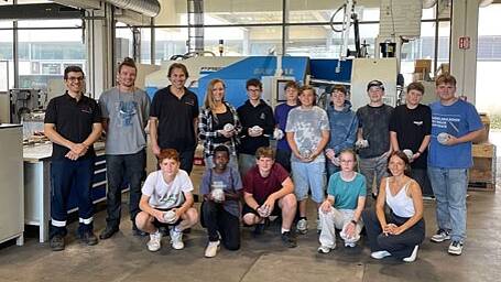 Am 23. Juli 2025 bekam das Gießereilabor der Hochschule Aalen Besuch von 16 Schülerinnen und Schülern der achten Klasse der Friedrich von Keller Schule Abtsgmünd. Nach einer kurzen Begrüßung und Laborführung erklärte Thomas Weidler grundsätzliche Merkmale der Gießereitechnologie. Er gab auch einen kleinen Überblick über die physikalischen Eigenschaften der Metalle Aluminium und Zink wie Schmelzpunkt und Dichte.