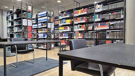In den Semesterferien hat die Bibliothek im 1. OG Platz für weitere Lernplätze geschaffen. Bücher wurden so umgestellt, dass zwei Regale freigemacht werden konnten. An dieser Stelle - ganz hinten an der Wand - stehen nun zwei weitere Tische für leises, konzentriertes Arbeiten zur Verfügung. Wie gewohnt können diese auch über Affluences reserviert werden.