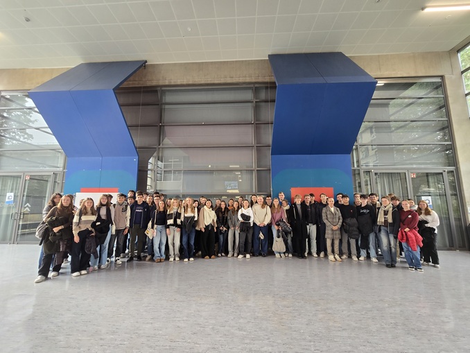 Di, 28. Oktober 2025 Kürzlich begrüßte die Hochschule Aalen rund 80 Schülerinnen und Schüler der Klassen 11 und 12 des St. Jakobus-Gymnasiums Abtsgmünd gemeinsam mit ihren Lehrkräften. Der Besuch begann mit einer Begrüßung durch die Schulkontaktstelle, vertreten durch Dr. Piyali Bhattacharjee und Kristina Gaugler. Für die Hochschule und das Gymnasium als neue Bildungspartner war der Erlebnistag eine der ersten gemeinsamen Veranstaltungen. Auch künftig soll die Zusammenarbeit weiter gestärkt werden.