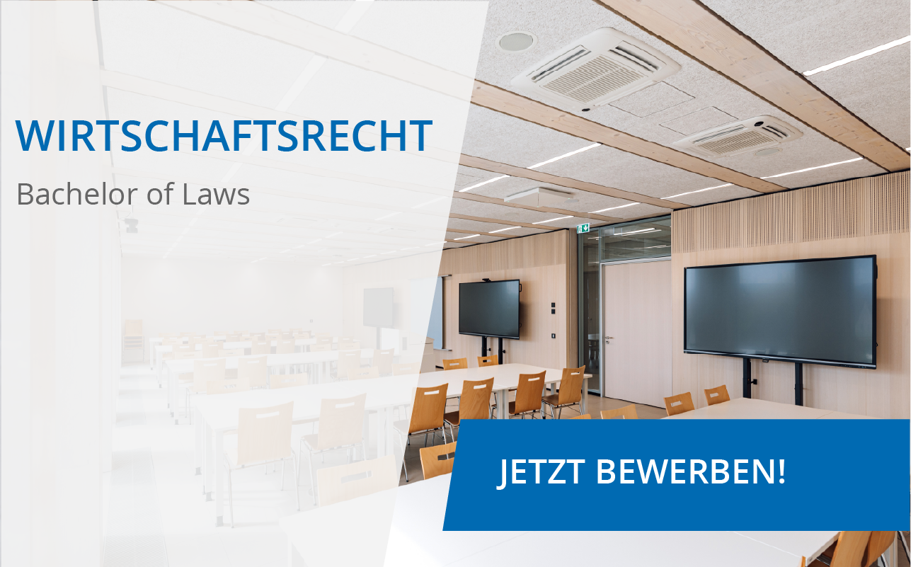 Bewirb dich jetzt für den Bachelor Wirtschaftsrecht und starte deine Karriere an der Schnittstelle von Recht und Wirtschaft. Wir freuen uns darauf, dich an unserer Hochschule willkommen zu heißen!