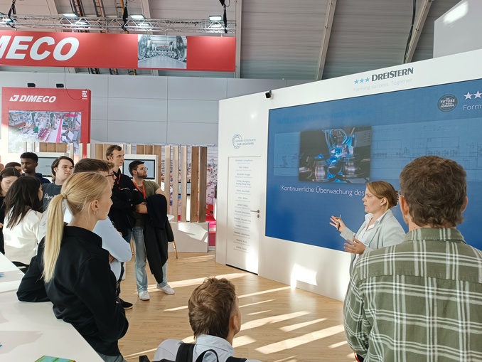 Die studentische Gruppe bei ihrer geführten Tour auf dem Stand der Dreistern GmbH & Co. KG