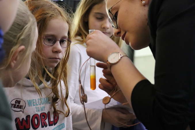 Hauptsache die Bauanleitung stimmt! Die Bausteine, aus denen die Haare gemacht sind, heißen nicht Legosteine, sondern Aminosäuren, die zu Proteinen zusammengebaut werden. Und die Bauanleitungen heißen Gene. Das Lexikon, das die Bauanleitungen enthält, ist die DNA. In einem Experiment hat die Studentin der Biotechnologie, Miriam Abele, zusammen mit den Kindern die DNA von Paprika sichtbar gemacht. Dann haben sie mit Stift und Papier ein „Protein“ nachgebaut. Aber was passiert, wenn die Bauanleitung nicht stimmt? Dann nehmen die Wissenschaftler eine Gen-Schere und ersetzen den falschen Abschnitt. Das kann Kranken helfen. Es kann aber auch missbraucht werden, warnte Abele.