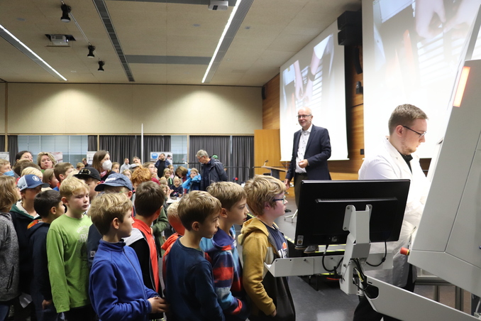 Spannende Themen warteten auf die kleinen Zuhörerinnen und Zuhörer bei der Kinder-Uni der Hochschule Aalen. Zusammen mit dem Team des Laserapplikationszentrums (LAZ) präsentierte Prof. Dr. Harald Riegel eine Vorlesung mit erstaunlichen Experimenten.