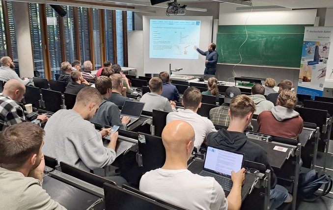 Gastreferent Christian Kunz berichtet bei seinem Vortrag zu Roboterzellen in der industriellen Praxis. Foto: Hochschule Aalen