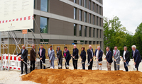Beim Spatenstich für die neue Mensa hatten Finanzstaatssekretärin Gisela Splett (Mitte) und Rektor Prof. Dr. Harald Riegel (6.v.r.) zahlreiche helfende Hände. Foto: © Hochschule Aalen | Saskia Stüven-Kazi