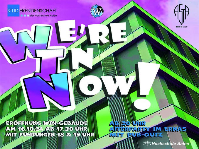 We‘ re In Now: Feierliche Eröffnung des WIN-Gebäudes Die Wirtschaftswissenschaften und das International Center feiern ihr neues Gebäude an der Hochschule Aalen
