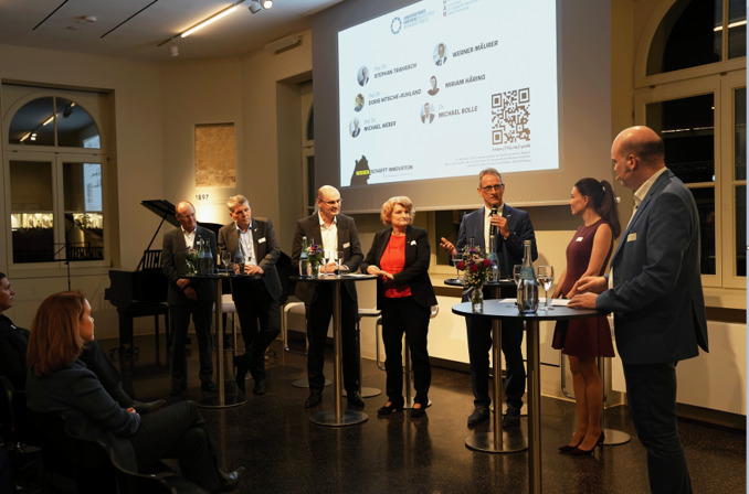 Im Schulterschluss mit Wirtschaftsvertreterinnen und -vertretern wurde auf der anschließenden Podiumsdiskussion klar, dass die Hochschulen im Land für die Zukunft des Landes eine zentrale Funktion haben. Werner Mäurer, Geschäftsführer der HIWIN GmbH und Miriam Häring, Geschäftsführerin der Anton Häring GmbH, machten deutlich, wie wichtig und unverzichtbar die Hochschulen für ihre Unternehmen und Regionen seien: «Wir brauchen Fachkräfte. Ohne die Kooperation mit den Universitäten, den Hochschulen für Angewandte Wissenschaften und der Dualen Hochschule Baden-Württemberg geht es nicht.»