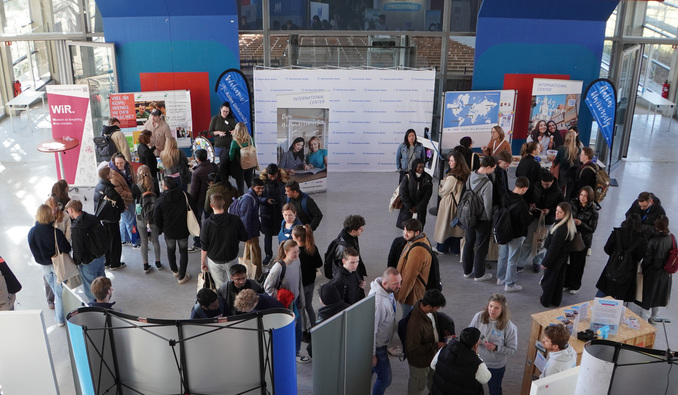 Beim Markt der Möglichkeiten präsentierten sich Hochschuleinrichtungen, studentische Initiativen, Firmen und die Stadt Aalen im Rahmen des Welcome Days den knapp 500 Erstsemestern. Foto: © Hochschule Aalen | Nele Hirschmiller