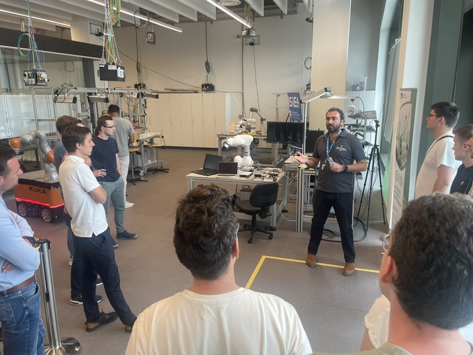 Ergänzend dazu bot der Besuch der Universität Bozen eine akademische Perspektive. Im Vordergrund standen interdisziplinäre Forschung, internationale Ausrichtung und die Rolle von Wissenschaft als Innovationsmotor. Nach einer kurzen Einführung durch Dr. Luca Gualteri wurde die Gruppe durch das Smart Mini Factory Labor sowie das XR-Labor geführt, die Einblicke in die „Fabrik von morgen“ vermittelten.