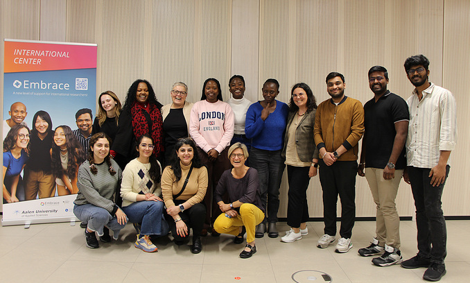 Als informelles Mittagstreffen richtet sich der „Drop-in Lunch“ speziell an internationale Forscherinnen und Forscher – als Ort, an dem sie Fragen stellen, Informationen einholen, ein wenig Deutsch üben oder einfach beim Mittagessen entspannen können. Aber auch „Nichtforschende“ sind herzlich eingeladen, daran teilzunehmen, Kontakte zu knüpfen und die Menschen kennenzulernen, die die Forschung an der Hochschule Aalen prägen. Jeder bringt sein eigenes Essen mit – und seine eigene Geschichte. „Beim gemeinsamen Essen kommt man so ganz nebenbei ins Gespräch, auch über Alltagsdinge“, sagt Dr. Lola Bulut, die das Projekt Embrace koordiniert. Als zentraler Service Center begleitet Embrace internationale Forschende sowohl vor, während als auch nach ihrem Aufenthalt in Aalen und steht ihnen mit Rat und Tat zur Seite. Gefördert wird das Projekt vom Bundesministerium für Forschung, Technologie und Raumfahrt (BMFTR).