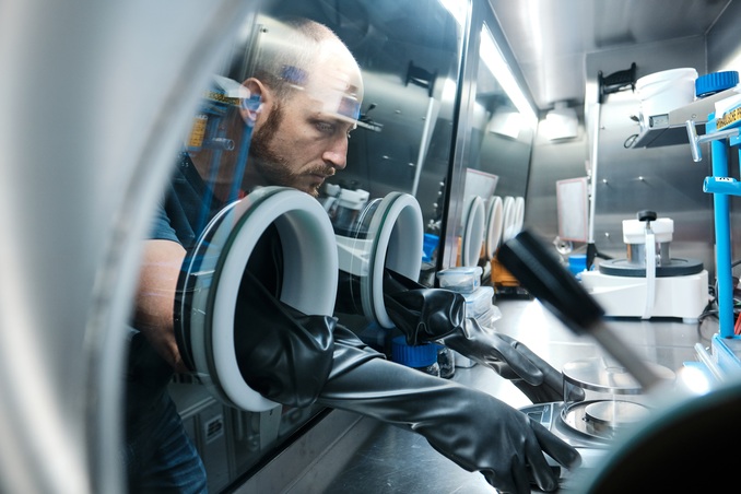 Ein Forscher der Hochschule Aalen bei der Analyse magnetischer Materialien im Labor – im Fokus stehen bei den Magnettagen 2026 Innovationen für Elektromobilität, Windenergie und eine rohstoffsichere Zukunft. Foto: © Hochschule Aalen | Jan Walford