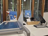 Im EG steht Ihnen ein Scanner der Firma book2net zur Verfügung. Die Bedienung funktioniert ganz einfach über einen Touchscreen, die eingescannten Seiten können in verschiedenen Formaten auf einem Stick abgespeichert werden. Hier ein Video-Tutorial.