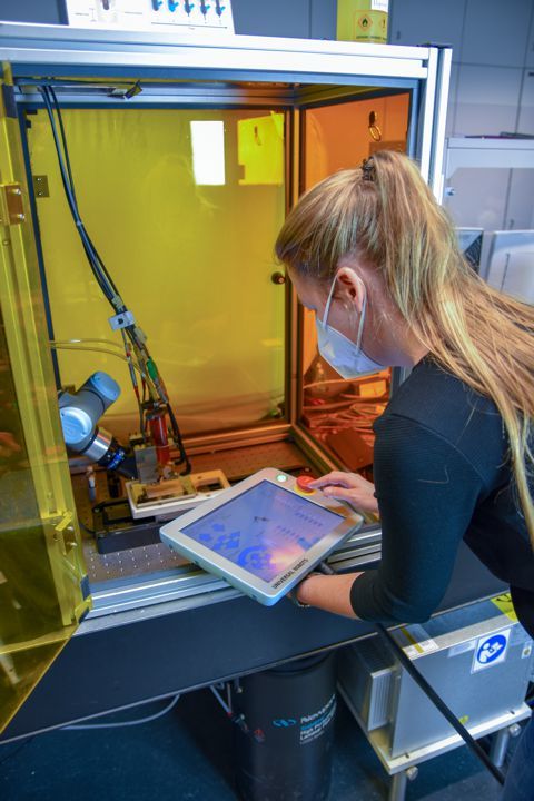 | Strukturierung von Photopolymeren mittels eines Mikrospiegelarrays Submikrometer Positionierung mit Hexapod Analyse der beim Prozess ausgesendeten Infrarotstrahlung |