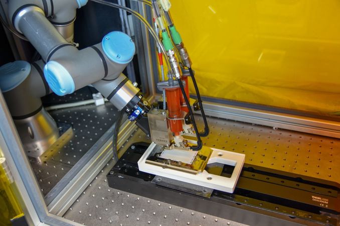 | Abscheiden kleiner Materialtröpfchen mit dem Piezo-Elektrischen Inkjet Verfahren in Kombination mit einer Roboterkinematik