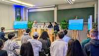 Studierende präsentieren ihre Geschäftsidee in einem dreiminütigen Abschluss-Pitch