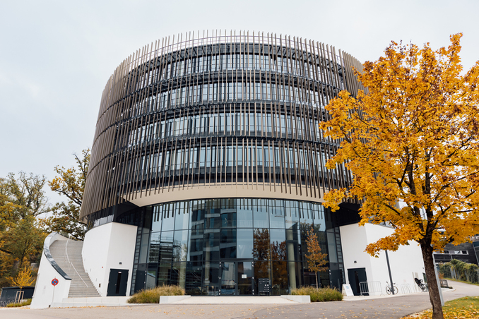 Mit dem Digital Innovation Space ist im Herzen des Campus der Hochschule Aalen ein architektonisch herausragendes Gebäude für Themen rund um Digitalisierung, Künstliche Intelligenz und audiovisuelle Medien entstanden. Foto: © Hochschule Aalen | Jan Walford